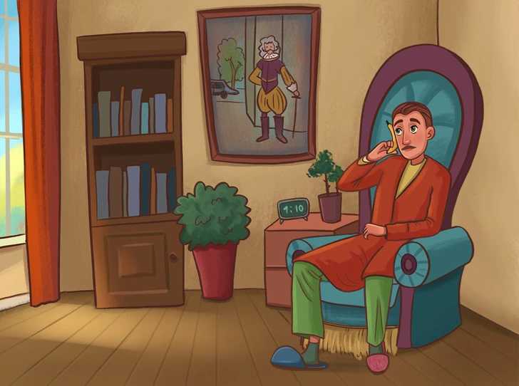 Vi ser en mann i morgenkåpe og tøfler som sitter i et rom og ser ettertenksomt ut av vinduet. Først tenker du kanskje: «Hva er det som er galt her, alt er jo som det skal være.» Men du bør ikke være så sikker.