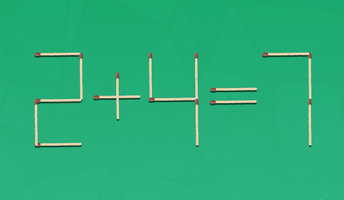 Ved første øyekast er dette fyrstikkpuslespillet veldig enkelt, men ikke undervurder det. For å finne den riktige løsningen trenger du oppmerksomhet, logisk tenkning og evnen til å legge merke til detaljer. Du må korrigere den feilaktige matematiske likheten 2 + 4 = 7 laget av 16 fyrstikker ved å flytte en av dem.