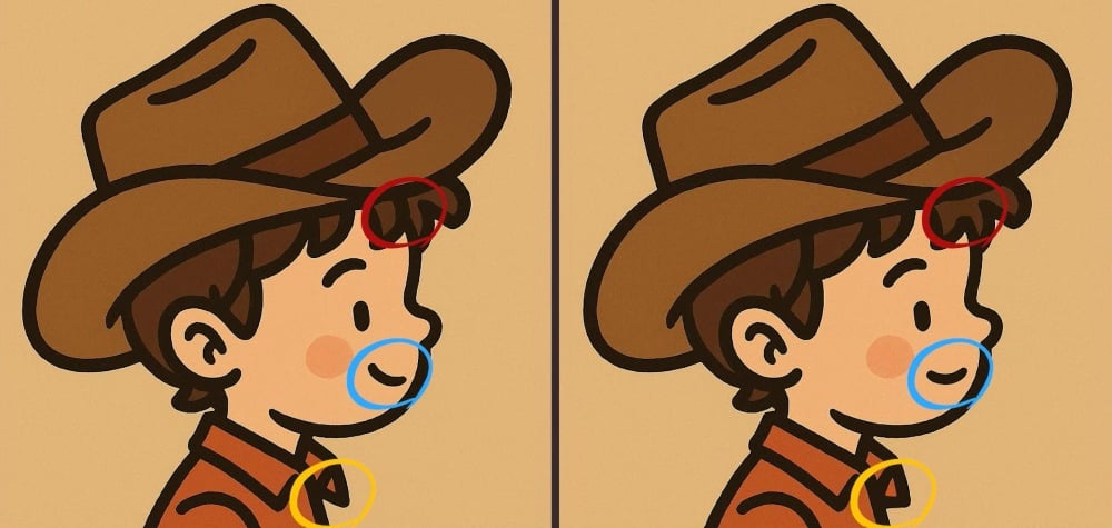 Er du klar for neste utfordring? Ta en nærmere titt på to bilder av en gutt med cowboyhatt. De ser kanskje like ut ved første øyekast, men det er tre små forskjeller. Tror du at du kan finne dem alle på 51 sekunder? Prøv det og test synsskarpheten din!