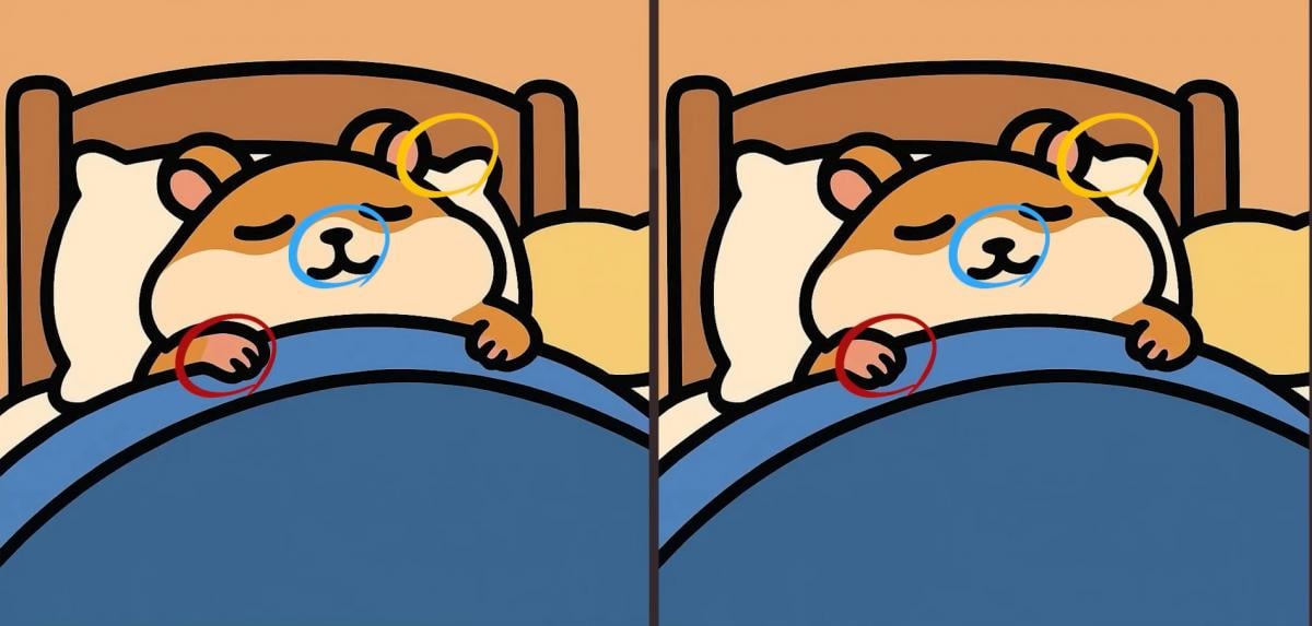 Er du klar for neste utfordring? Ta en nærmere titt på de to bildene av en sovende hamster. De ser kanskje like ut ved første øyekast, men det er tre små forskjeller. Tror du at du kan finne dem alle på 29 sekunder? Prøv det og test synsskarpheten din!