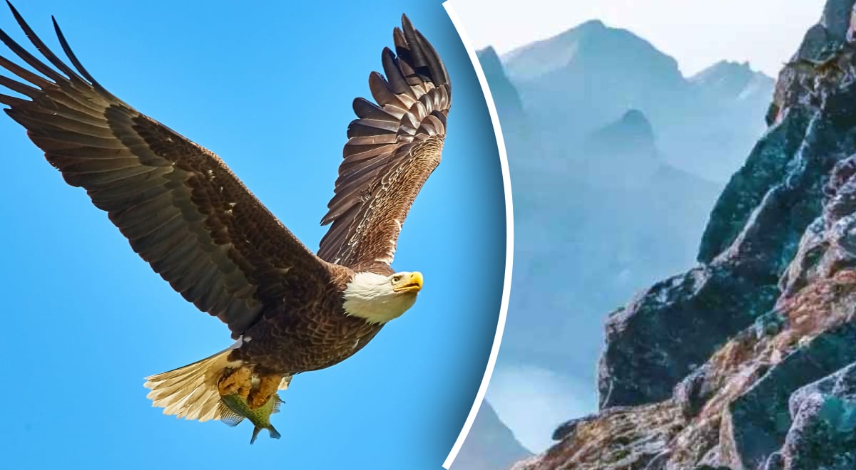 Det tar 6 sekunder å finne en ørn i fjellet / collage: Glavred, foto: unsplash.com