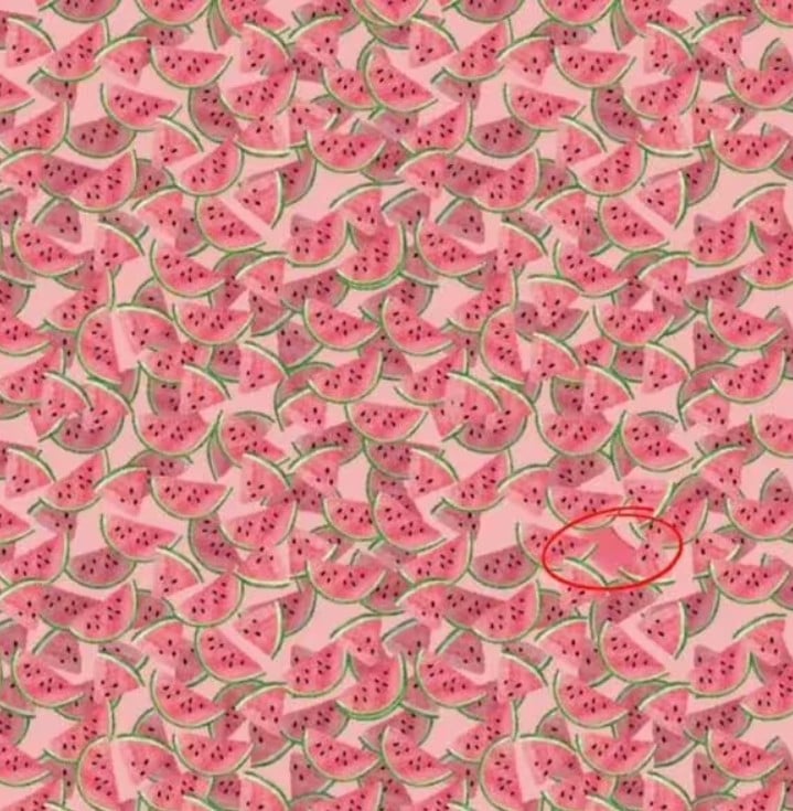 I denne gåten har du bare 10 sekunder på deg til å finne den ensomme vannmelonen uten frø.