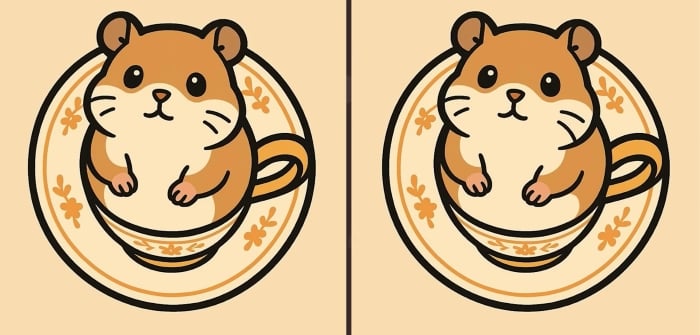 Er du klar for neste utfordring? Ta en nærmere titt på de to bildene av en hamster som sitter i en kopp. Ved første øyekast ser de kanskje identiske ut, men det er tre små forskjeller. Tror du at du kan finne dem alle på 51 sekunder? Prøv det og test synsskarpheten din!