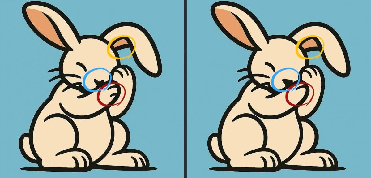 Er du klar for neste utfordring? Ta en nærmere titt på to bilder av en kanin. De ser kanskje like ut ved første øyekast, men det er tre små forskjeller. Tror du at du kan finne dem alle på 85 sekunder? Prøv det og test synsskarpheten din!