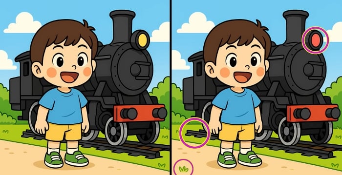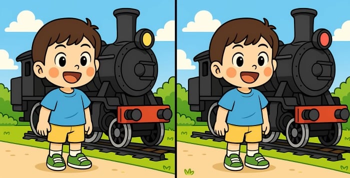 Er du klar for neste utfordring? Ta en nærmere titt på de to bildene av gutten som står ved siden av damptoget. Ved første øyekast ser de kanskje identiske ut, men det er tre små forskjeller. Tror du at du kan finne dem alle på 29 sekunder? Prøv det og test synsskarpheten din!