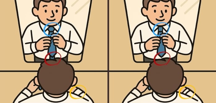 Er du klar for neste utfordring? Ta en nærmere titt på to bilder av en mann som knyter et slips. Ved første øyekast kan de se identiske ut, men det er tre små forskjeller. Tror du at du kan finne dem alle på 45 sekunder? Prøv det og test synsskarpheten din!